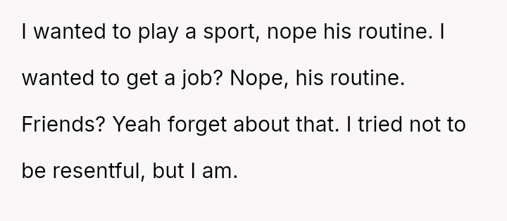 Dreams of sports, work, and friendship have been quietly crushed beneath the relentless demand for routine, leaving resentment to quietly fester in the corners of a younger brother’s heart.
