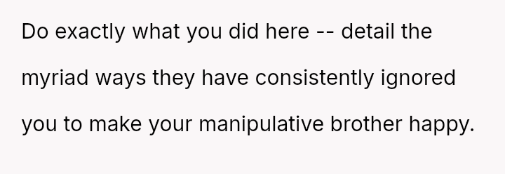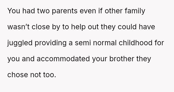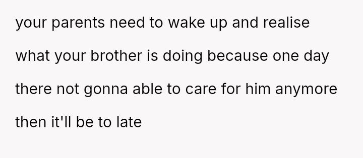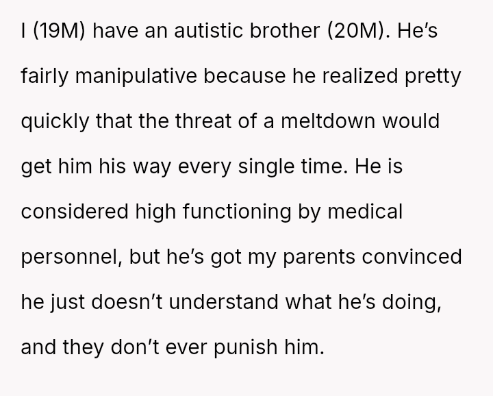 His brother’s meltdowns are wielded like weapons, bending the family to his will, while the parents turn a blind eye to manipulation, convincing themselves he’s just unaware.