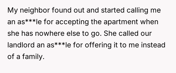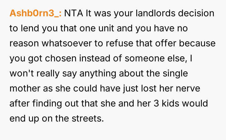 AITA for taking an apartment for myself even though it means a single mom and her kids could be homeless?