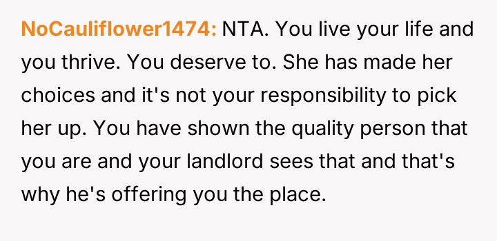 The original poster (OP) faces a difficult choice between securing s**ble housing, which is critical due to past homelessness and financial ins**bility, and addressing the emotional plea of a struggling neighbor.