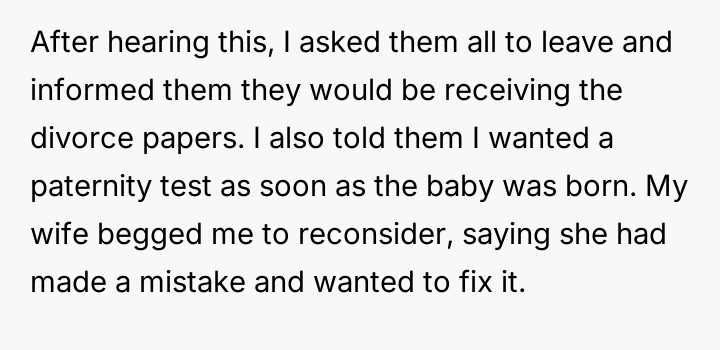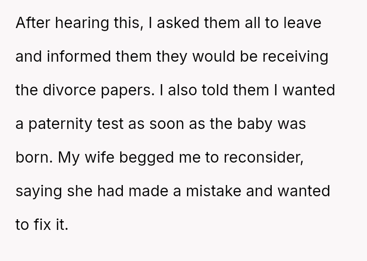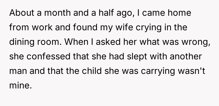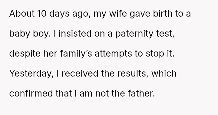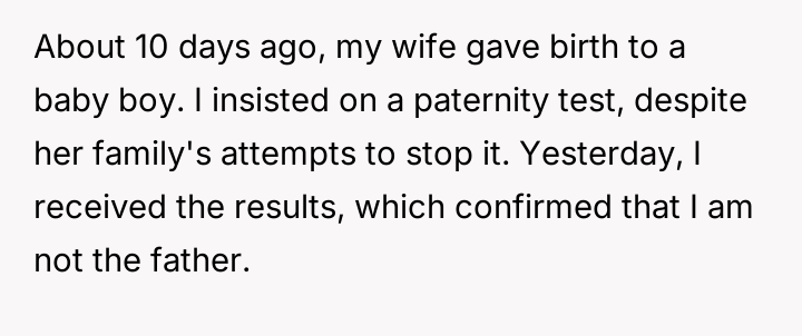 The original poster (OP) is dealing with the immediate aftermath of discovering his wife's in***elity, the confirmation that he is not the father of the child, and intense pressure from his in-laws to reverse the divorce proceedings.