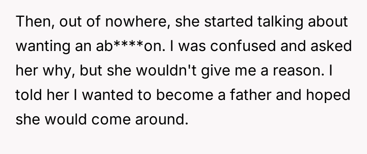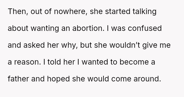 The wife’s sudden change, marked by anger and a desire to end the pregnancy, shattered the fragile peace they had built.