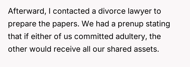 His emotional position is defined by a sense of betrayal and a firm commitment to ending the marriage based on the in***elity clause in the prenup and the confirmed lack of paternity.