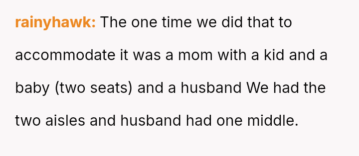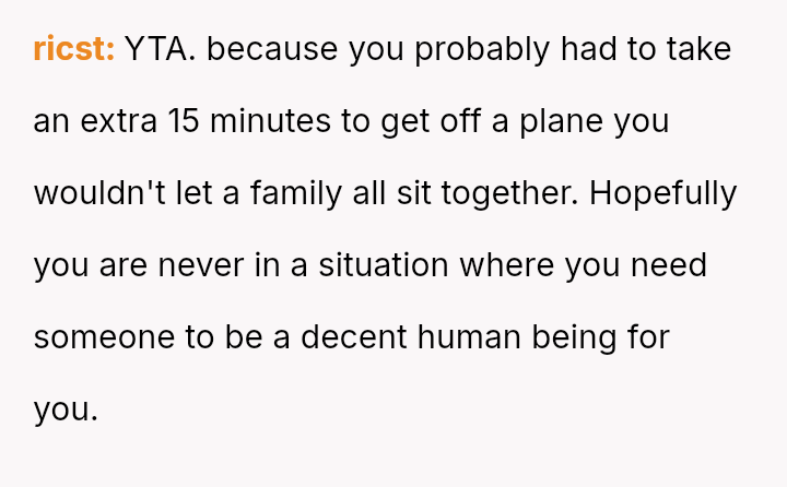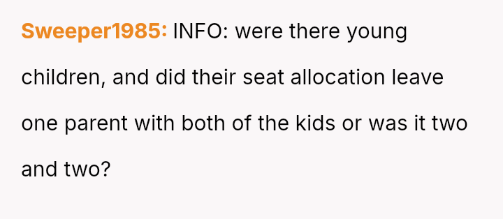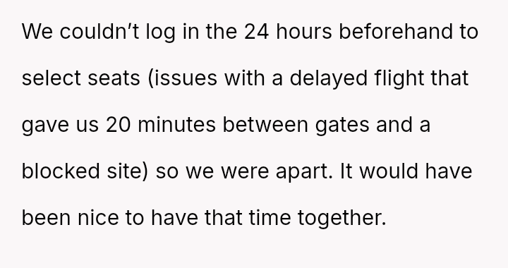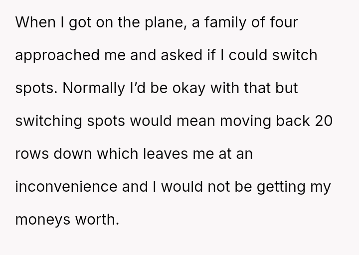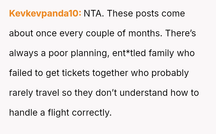 The core disagreement centers on whether the OP's right to the specific seat they purchased outweighs the family's desire for convenient seating arrangement, causing significant public friction.