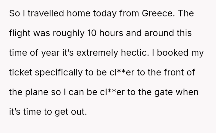 After a long, exhausting journey from Greece, he clung tightly to the small control he had over his chaos—his seat near the front of the plane.