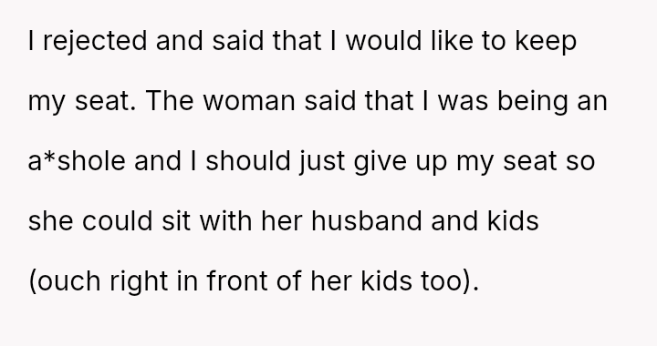 When a family demanded he surrender the seat he had paid for, their ent*tled accusation cut deeper than mere inconvenience.