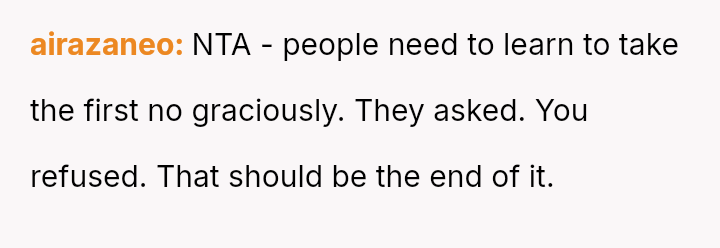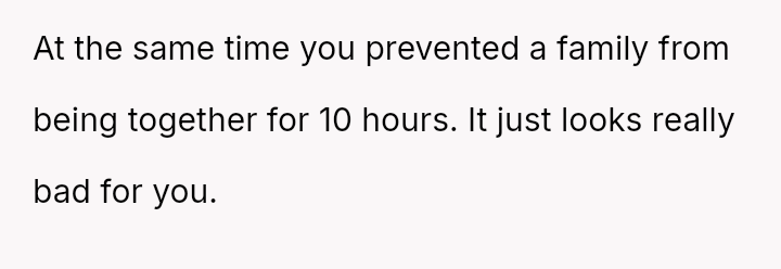 Was the OP justified in firmly upholding their paid arrangement against the public pressure exerted by the demanding family, or did they fail to meet a basic social expectation of compromise for the sake of a family's convenience? The debate lies between a*serting personal rights and yielding to social appeal.