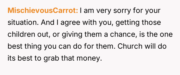 Her heart aches for her nieces, caught in the crossfire of broken promises and fractured faith, as she battles a system that favors tradition over her genuine care.