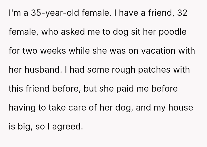 She thought it would be a simple favor—watching a friend’s poodle for two weeks. But as days turned into chaos, the dog she reluctantly cared for became a symbol of betrayal, tearing apart the fragile threads of friendship.