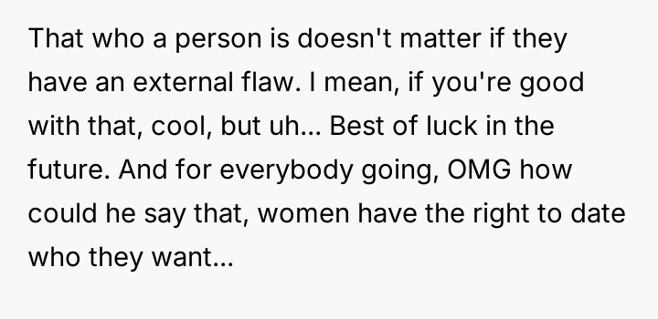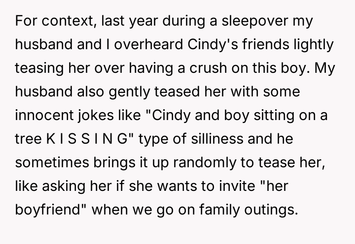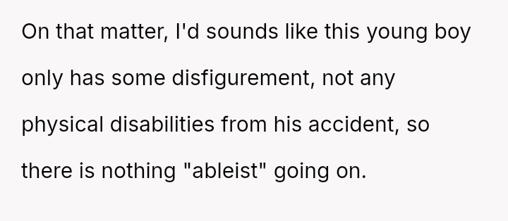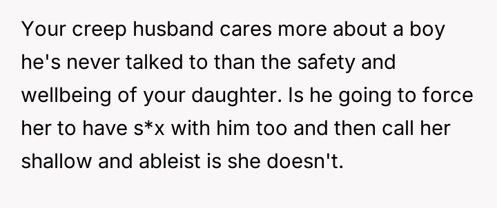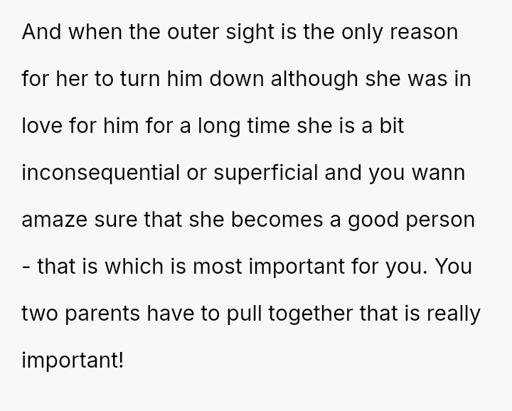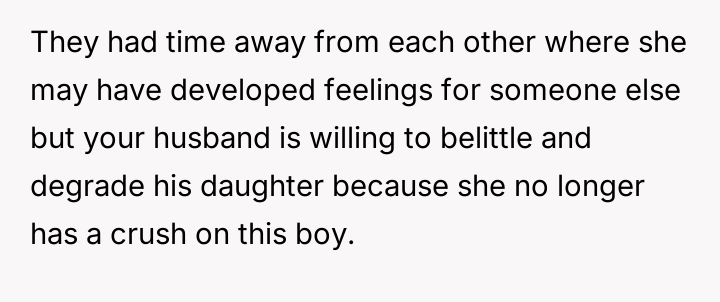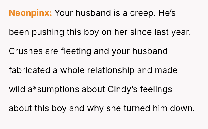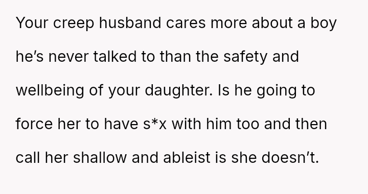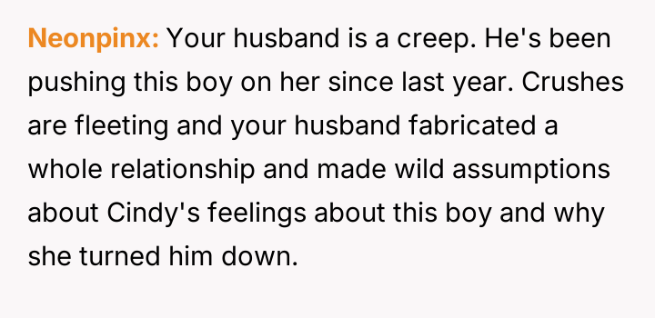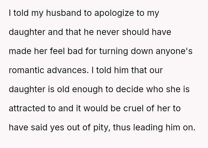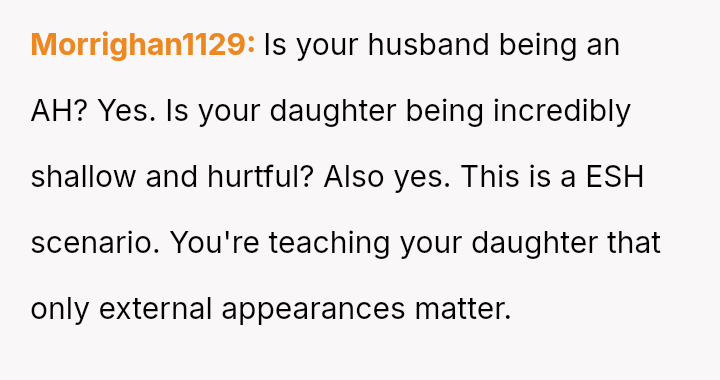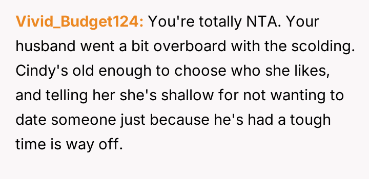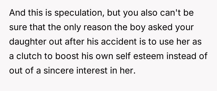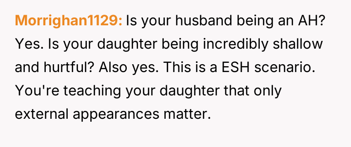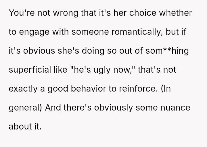 Conversely, the husband believes Cindy's rejection was cruel and shallow due to the boy's changed appearance, feeling the OP undermined his authority by defending their daughter's decision.