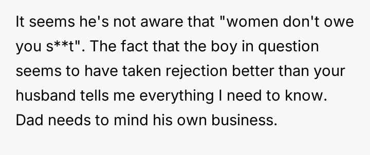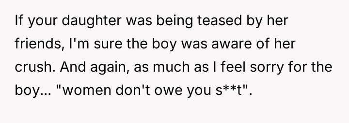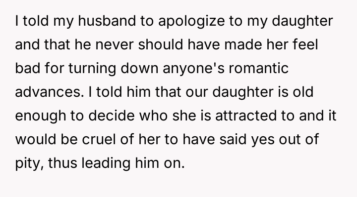 AITA for defending my daughter's choice to turn down a boy's advances?