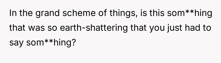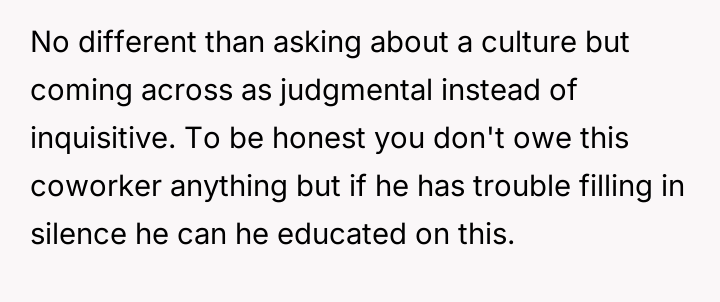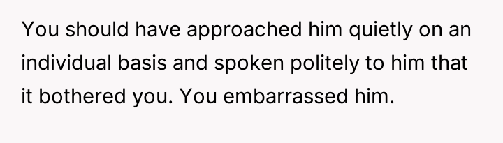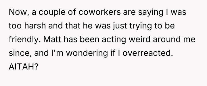 Considering the coworker claimed harmless intent versus the poster's need for peace, was the direct confrontation an overreaction that damaged workplace relations, or was it a necessary defense against daily, intrusive commentary?
