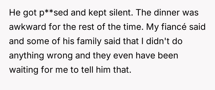 But at a birthday dinner meant for celebration, the ghosts of old mistakes and careless words emerged, tearing through the fragile peace she had with her fiancé and his family.