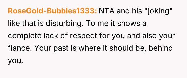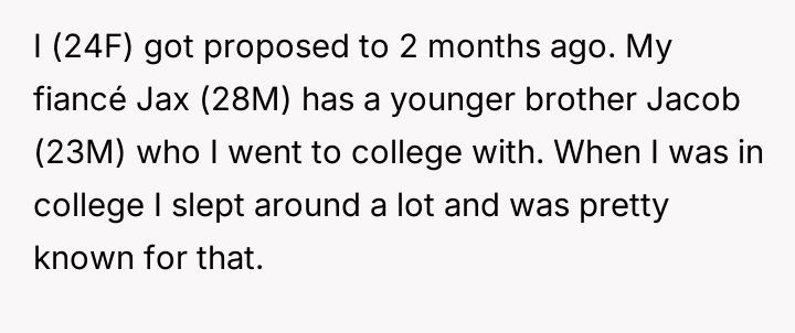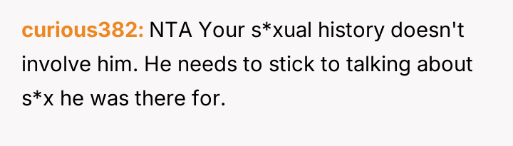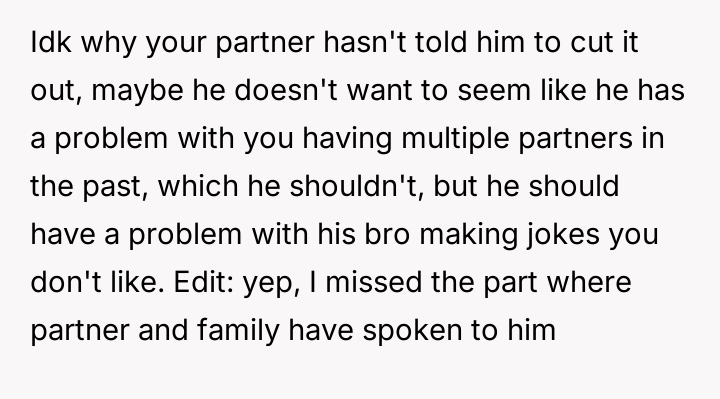 The original poster reached a breaking point regarding repeated, unwelcome comments about her past s*xual history made by her fiancé's brother, culminating in a sharp retort during a family dinner.