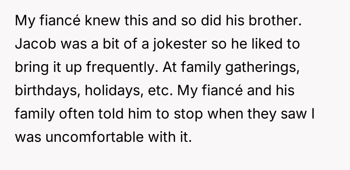 While her fiancé and some family members supported her final stand, the immediate aftermath included h***ssment from the brother's friends, leaving the OP feeling validated yet stressed by the social fallout.