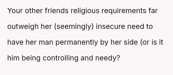 Does the OP have the right to set firm boundaries for a private event, even if it means upsetting a close friend who prioritizes her fiancé's constant presence over the stated purpose of the gathering, or should she have conceded for the sake of group harmony, given the friend's es**blished habit?
