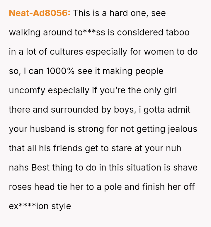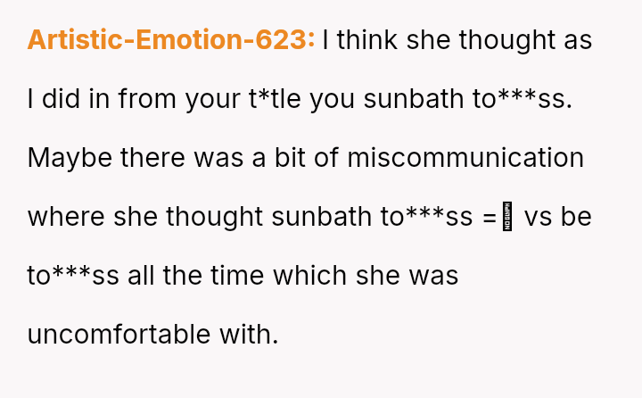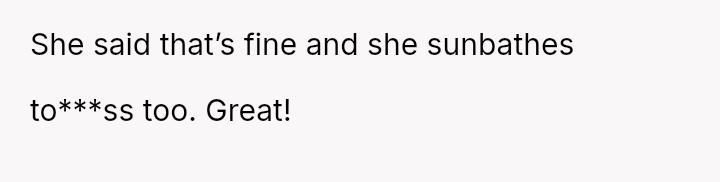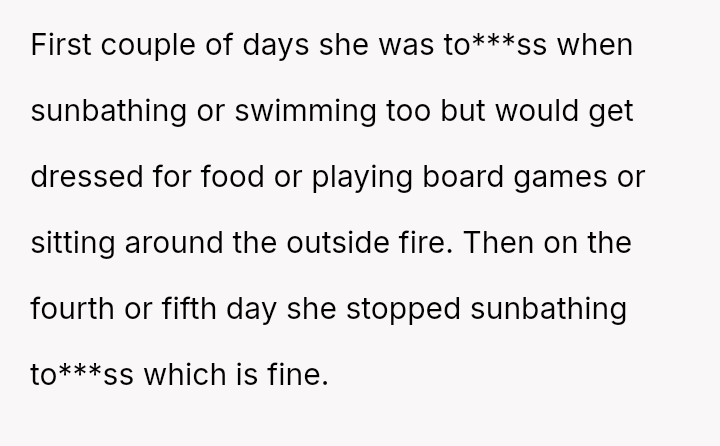 For years, she’s embraced this freedom—sunbathing to***ss, swimming, living naturally—unfazed by the world, surrounded by her husband and his friends who understand and accept her without judgment.