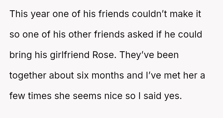 But this year, a new presence disrupts the familiar rhythm. Rose, the girlfriend of one of the friends, arrives, bringing with her unspoken tensions and silent challenges.