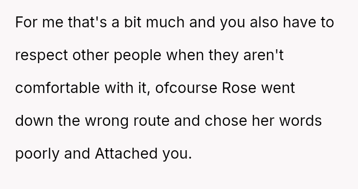 Her conflict arises from Rose's sudden judgment and withdrawal, where Rose expected the OP to adjust her es**blished behavior based on her personal discomfort, rather than accepting the prior communication about the holiday norms.