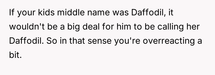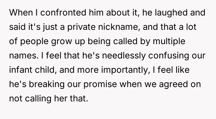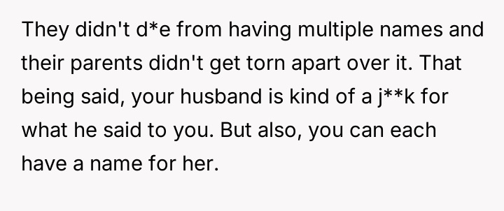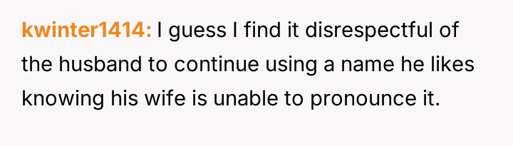 The central debate hinges on whether a private nickname that v***ates a mutual naming agreement warrants serious concern, or if the husband is ent*tled to use a name he loves, even if it is only in private settings.