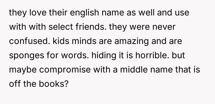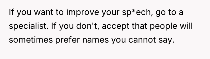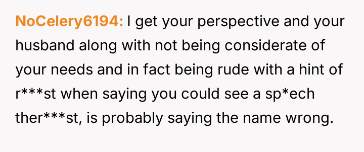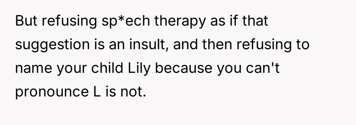 After multiple discussions, the husband suggested sp*ech therapy, which the OP resisted. They eventually agreed on the name Hana.