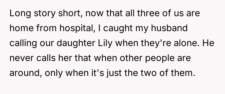 Now that they are home from the hospital, the OP discovered her husband calls the baby Lily when they are alone, treating it as a private nickname.