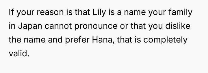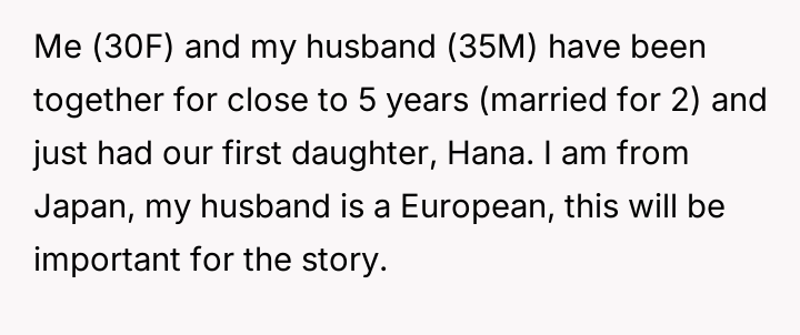 The original poster (OP), a 30-year-old woman from Japan, and her 35-year-old European husband recently welcomed their first child, a daughter named Hana. Before the birth, the couple discussed names extensively.