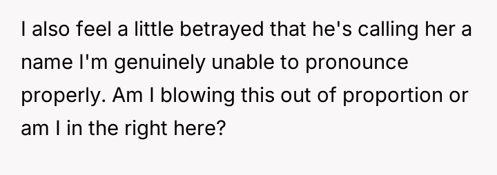 Is the OP right to feel that this private usage is a breach of trust, or is the husband justified in using a personal nickname?