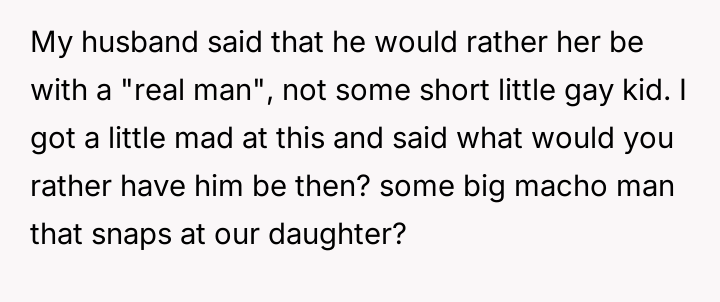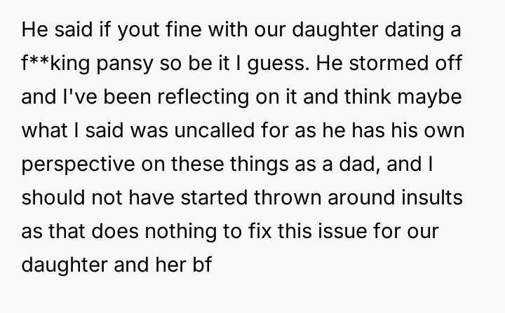 AITA for insulting my husband for what he said about our daughter’s bf?