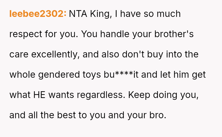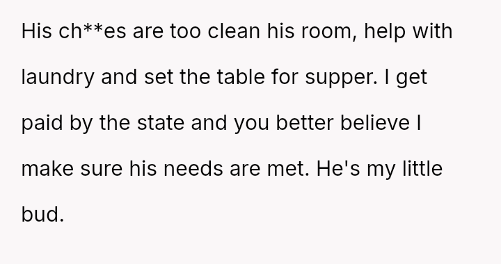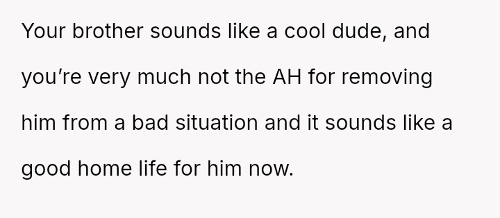 The original poster (OP) is deeply committed to caring for his younger brother, providing him with structure, financial incentives for ch**es, and emotional support, especially after their parents withdrew support.