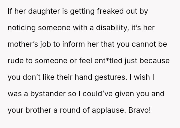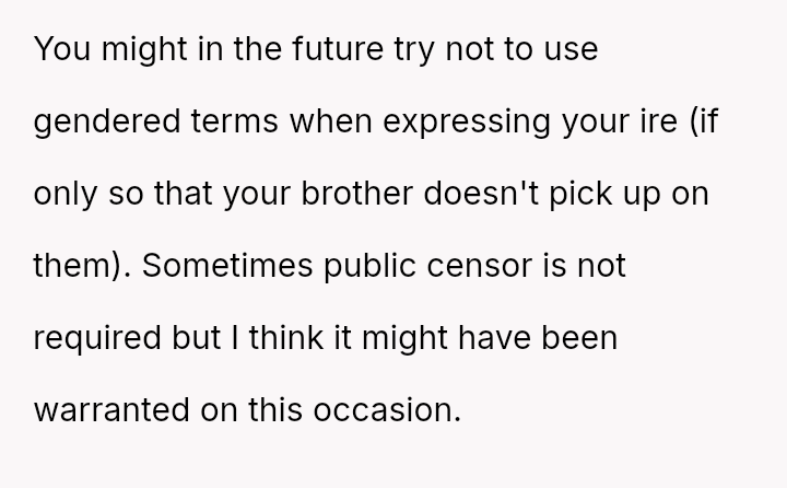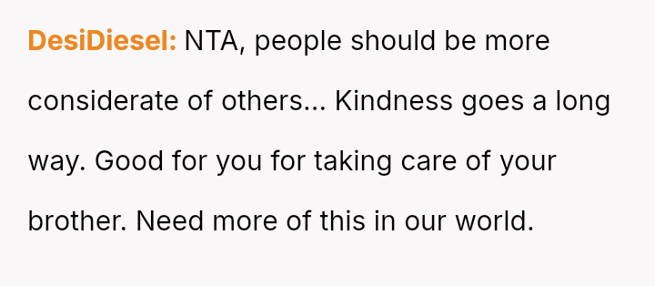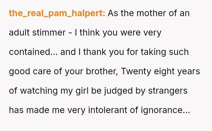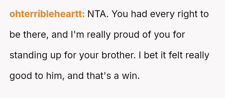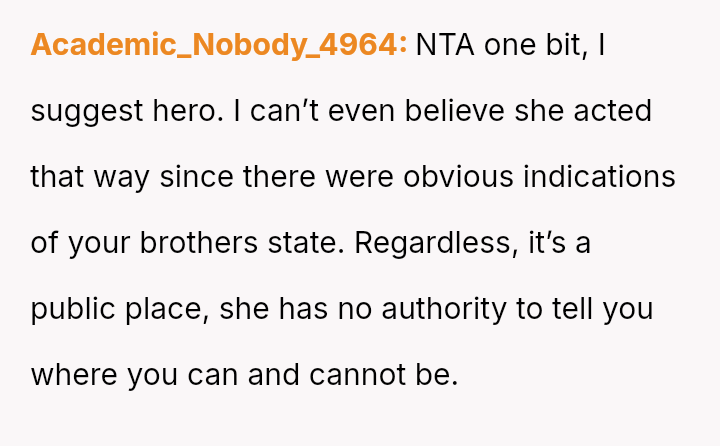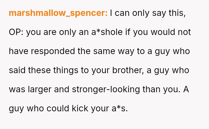 Was the OP justified in aggressively defending his brother against a rude stranger's public criticism, or did his emotional reaction escalate the situation unnecessarily?