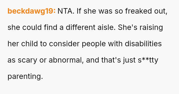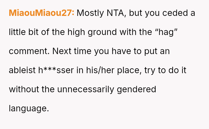 The core question is where the line is drawn between protecting a vulnerable family member and maintaining public decorum when faced with unwarranted judgment.