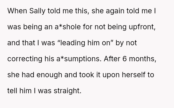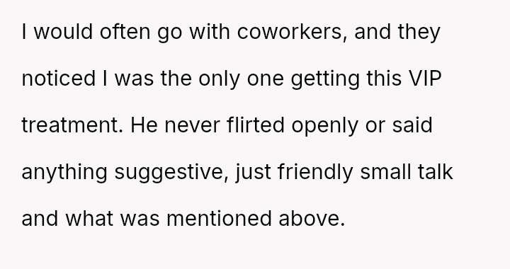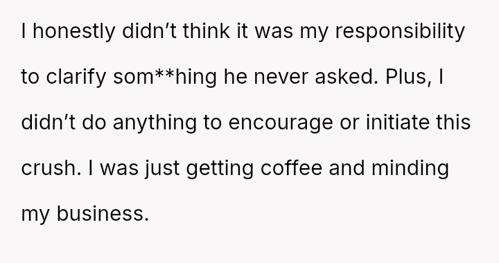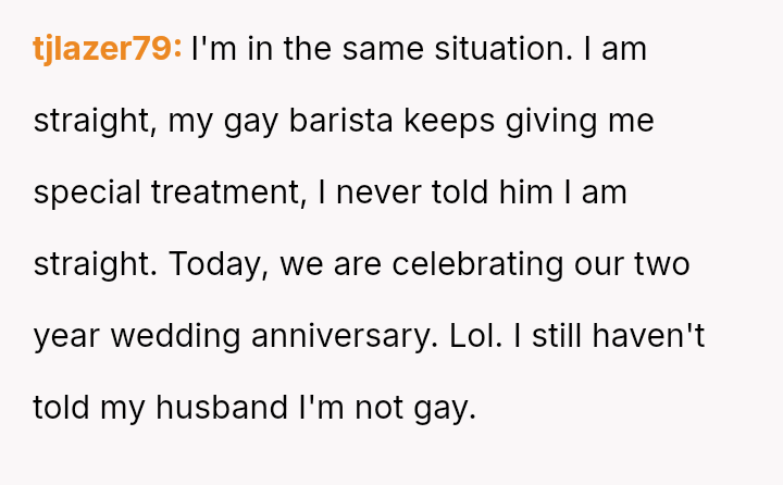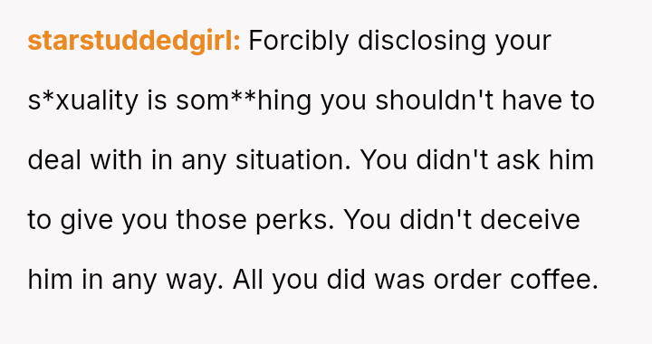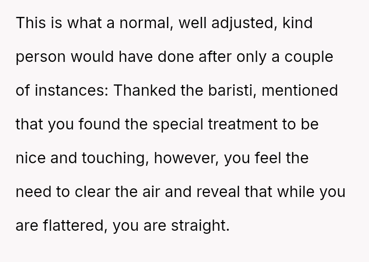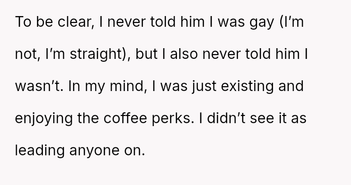 The original poster (OP) found himself in a difficult situation where he enjoyed the special treatment provided by a barista who seemed attracted to him, yet he never actively confirmed or denied his own s*xual orientation.