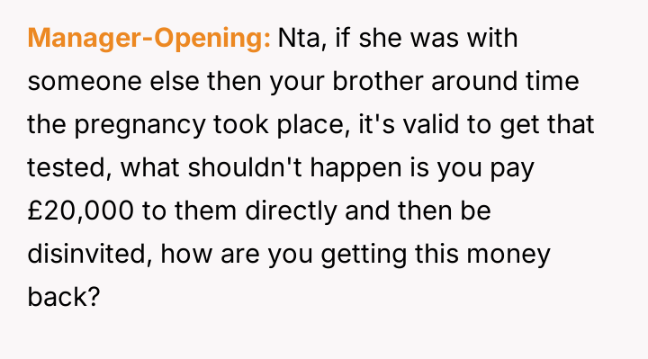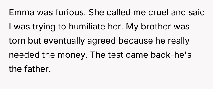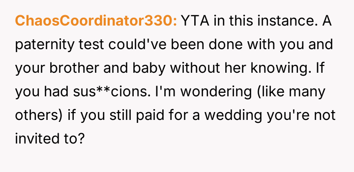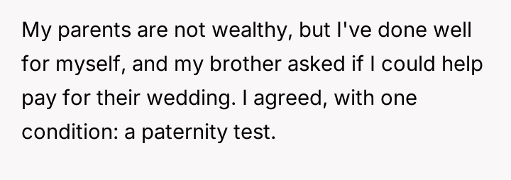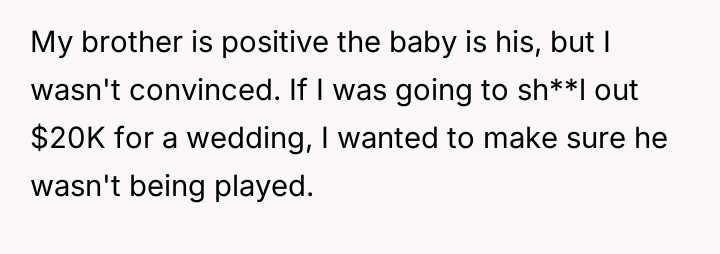AITA for Making My Brother's Fiancée Take a Paternity Test Before Paying for Their Wedding?