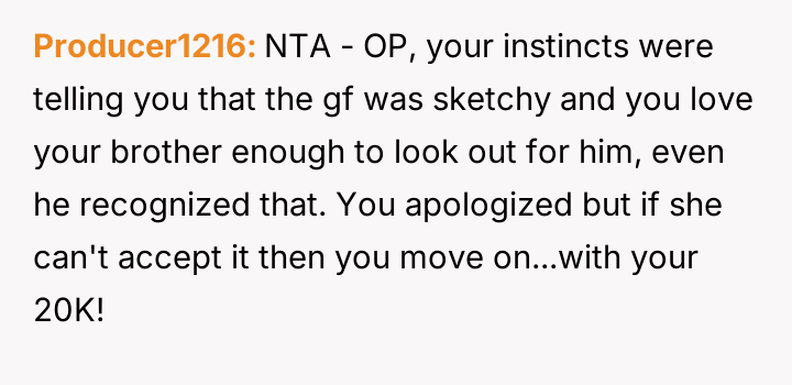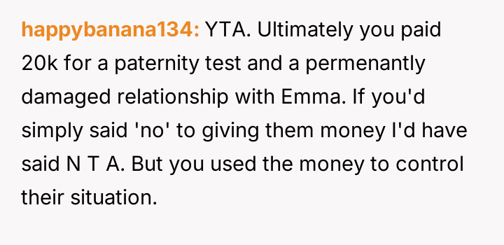 The original poster (OP) acted on sus**cion to protect a significant financial investment ($20K) intended for their brother's wedding, making financial support conditional on a paternity test.