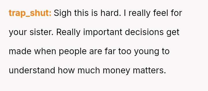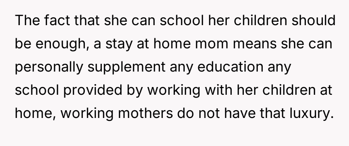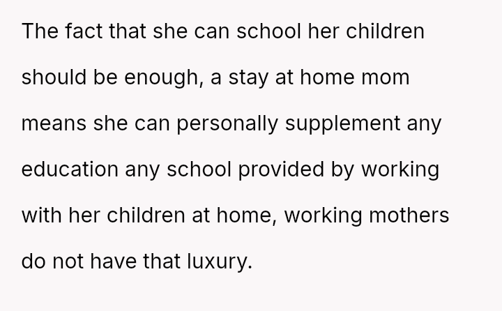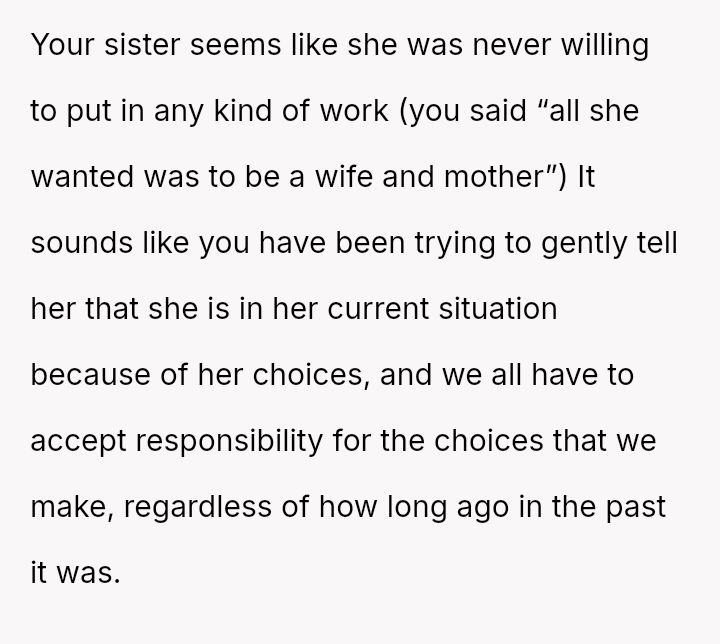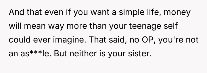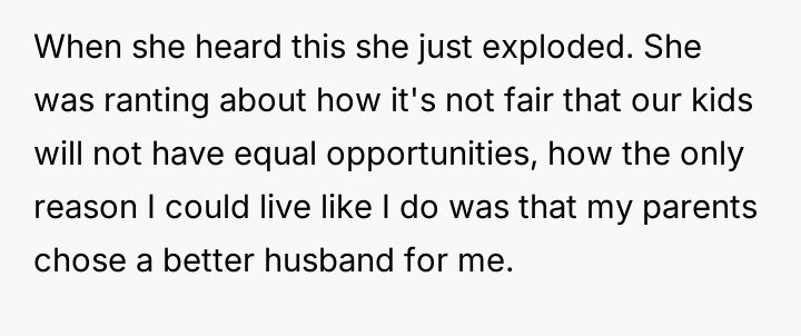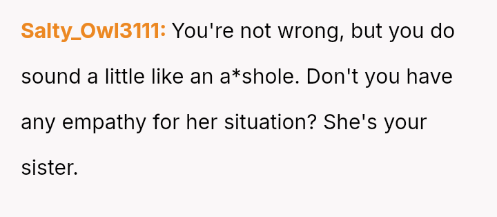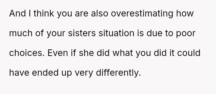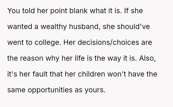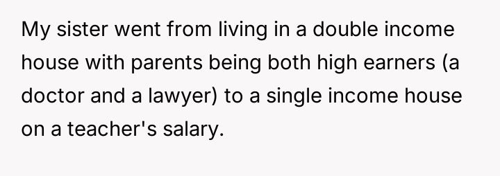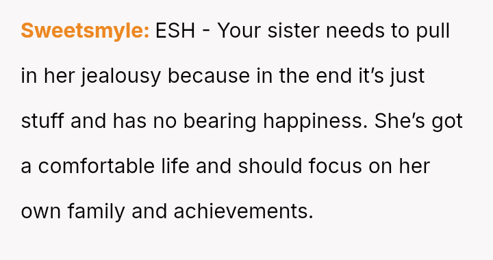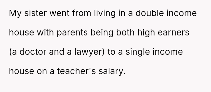 Or was the OP justified in defending her circumstances against her sister's accusations of unfairness regarding their children's opportunities?