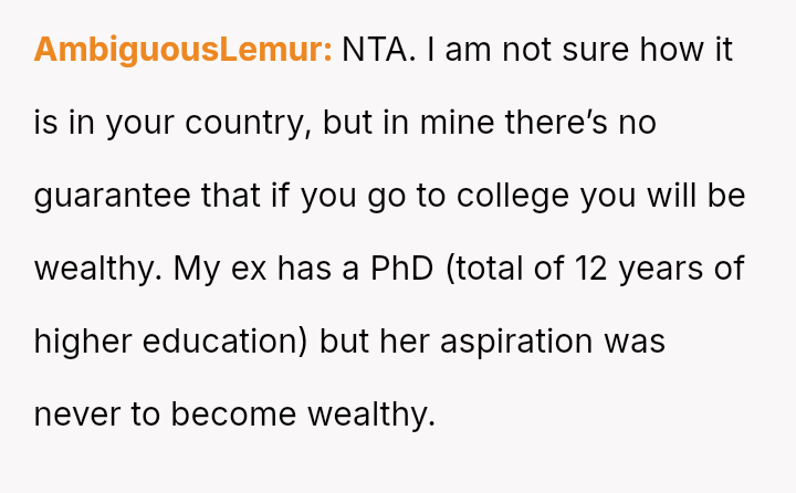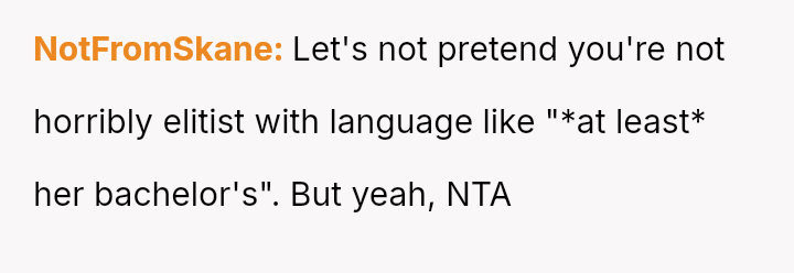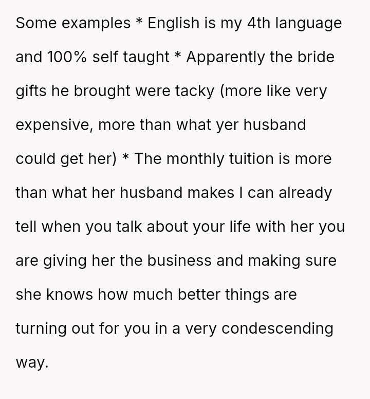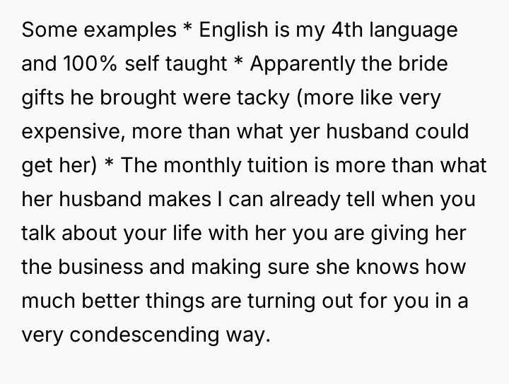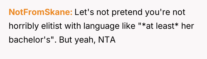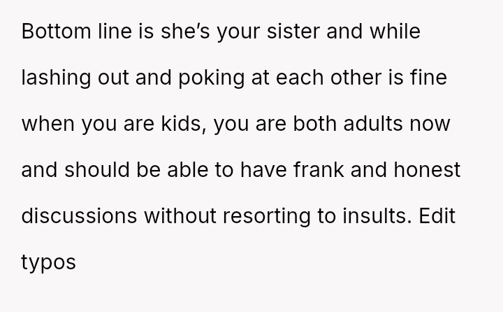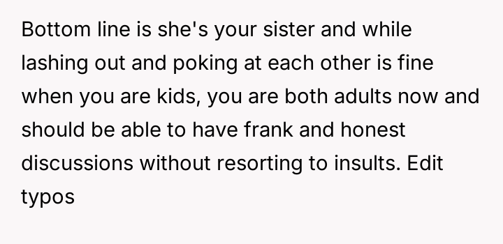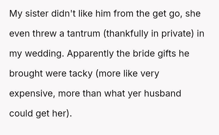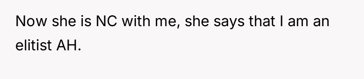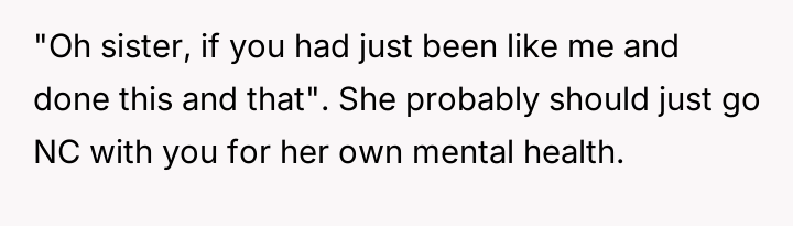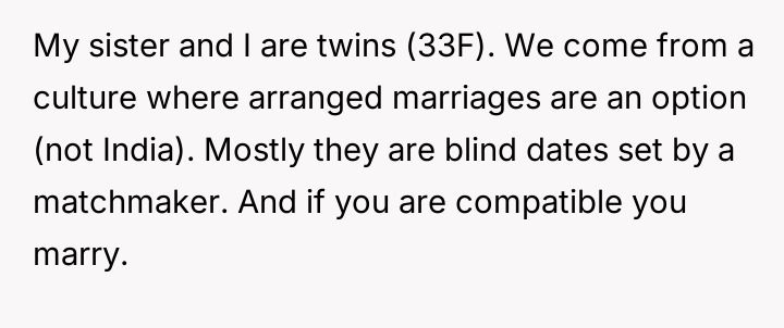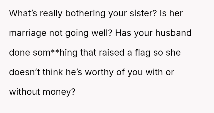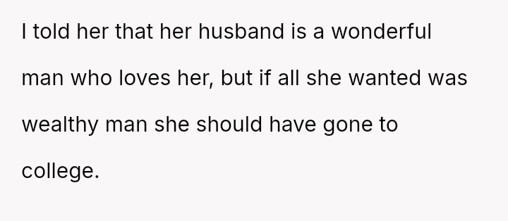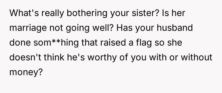 The core conflict lies in the sister's resentment over the perceived disparity in marital outcomes, which the OP addressed by directly linking her success to her higher education and professional career, essentially validating her choice over her sister's earlier decision to forego college for an arranged marriage.
