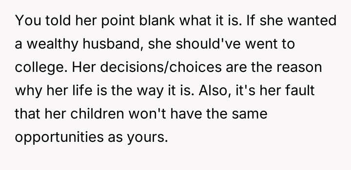 AITA for telling my sister that she should have gone to college if she wanted a life like mine?