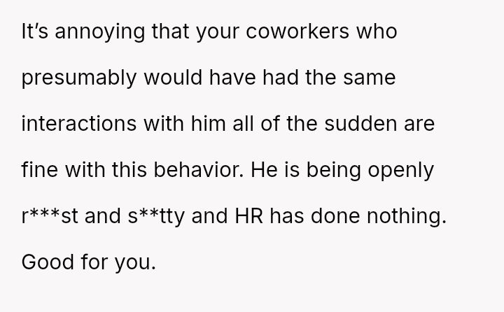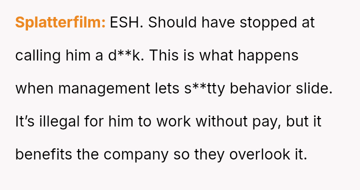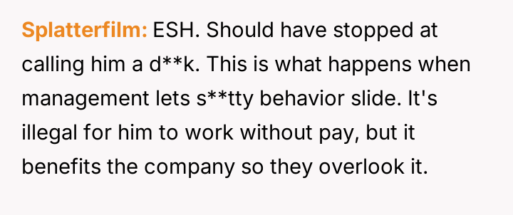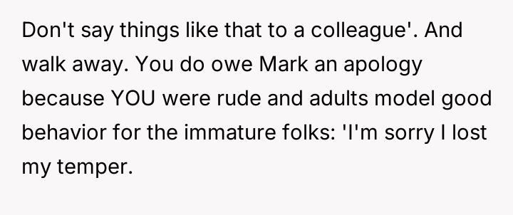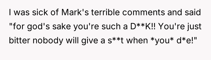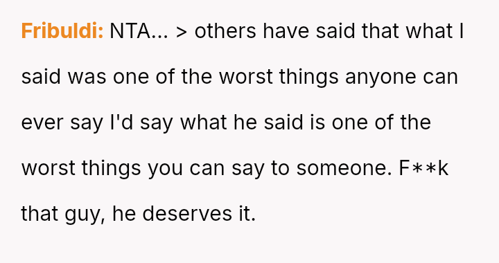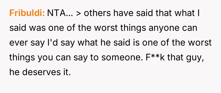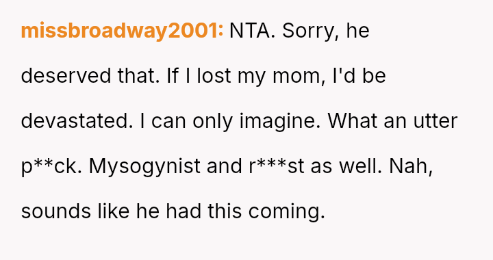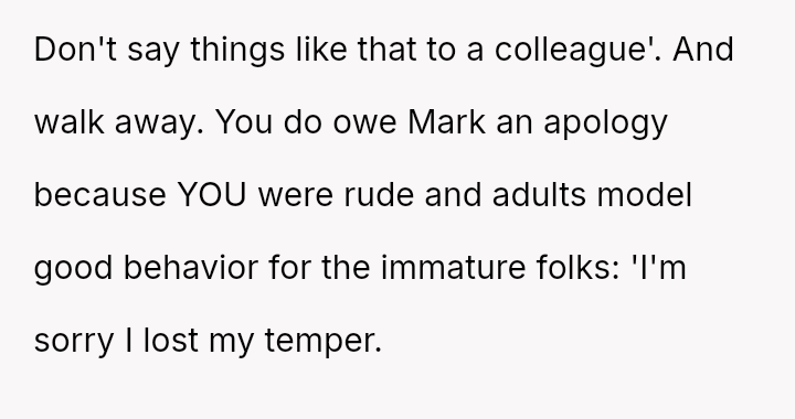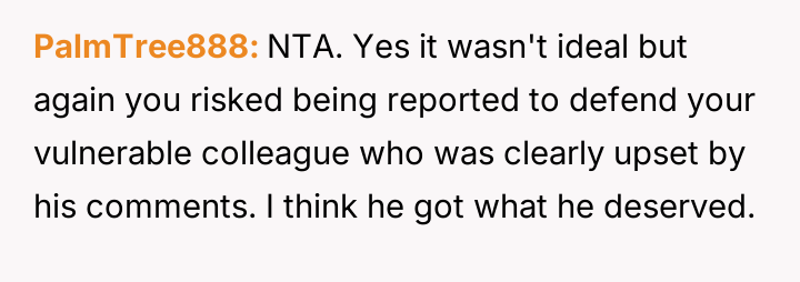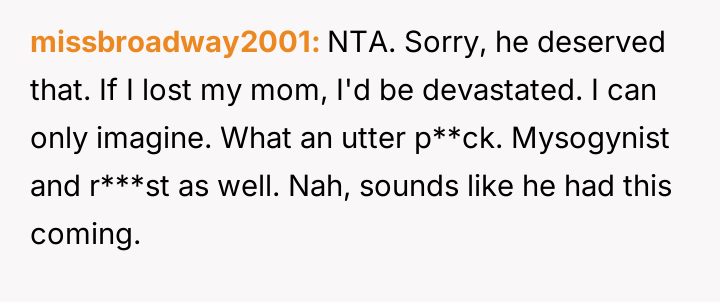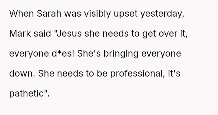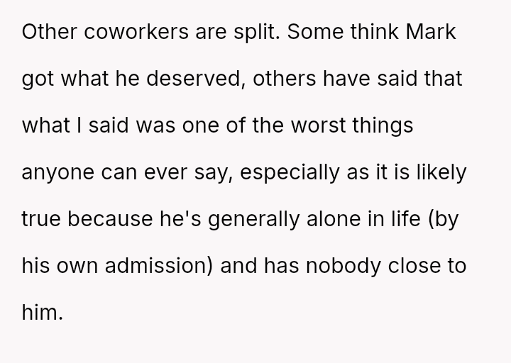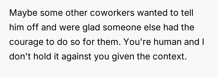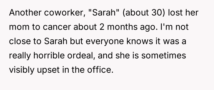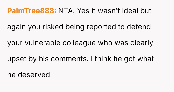 The original poster (OP) reacted strongly to a coworker's callous comment directed at another employee grieving a recent loss, leading to a direct, aggressive confrontation.