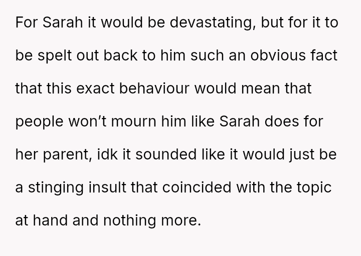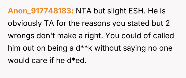 Was the OP justified in using harsh, personal language to defend a grieving coworker against severe emotional insensitivity, or did their actions cross an unacceptable line by reciprocating cruelty, even if motivated by a sense of justice?