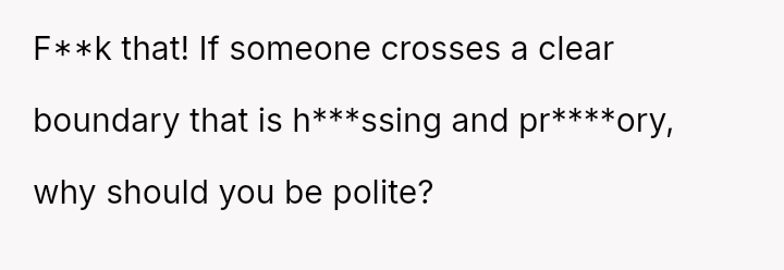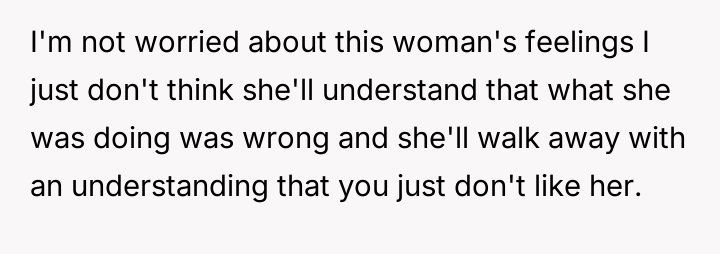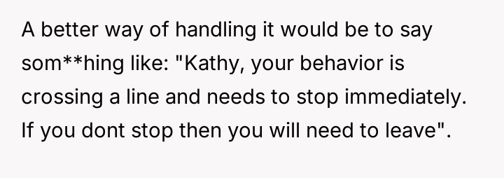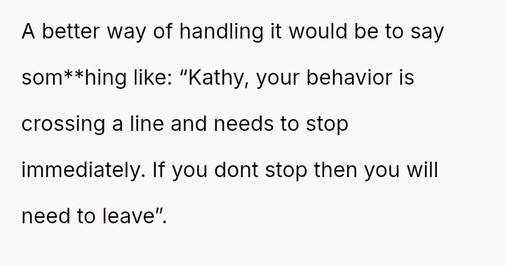 The central tension lies between the OP's belief that direct, harsh confrontation was necessary to stop the boundary v***ation and his wife's view that his aggressive personal insult escalated the situation unnecessarily.