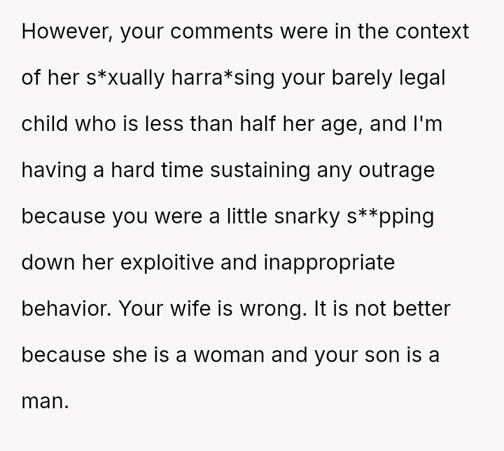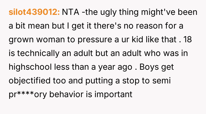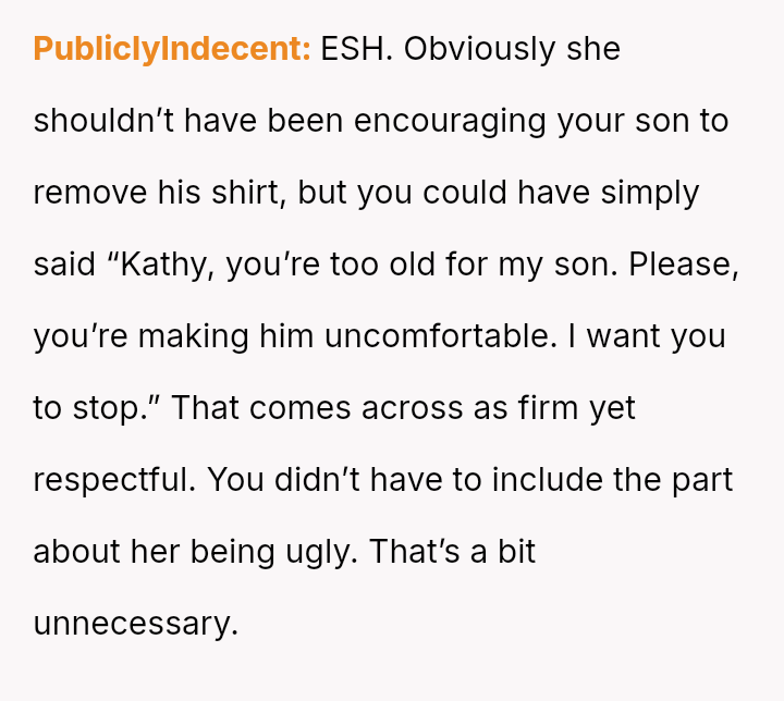 Given the persistent boundary v***ation directed at their son, was the OP justified in using a deliberately hurtful personal remark to enforce a boundary, or should he have used a less aggressive intervention, even if it risked the boundary being tested further?