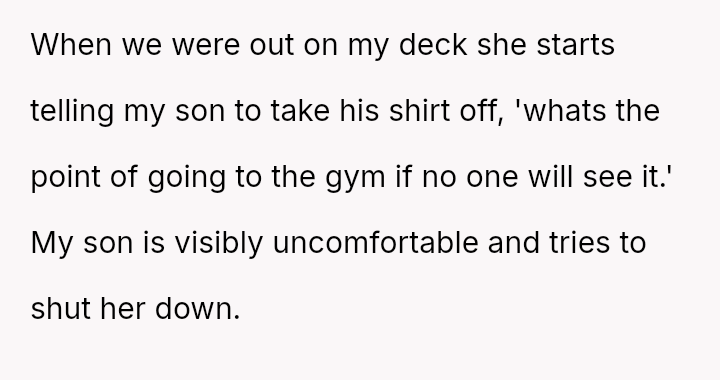 The subtle discomfort of a son facing inappropriate attention from a much older woman spiraled into a confrontation that shattered the fragile harmony, leaving emotions raw and relationships strained.