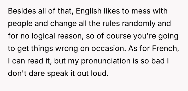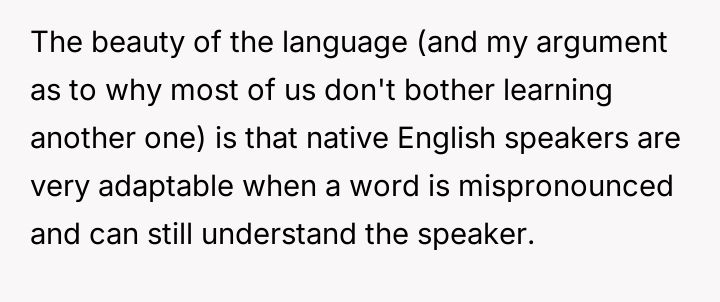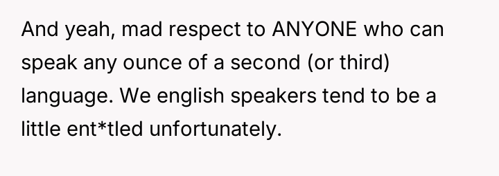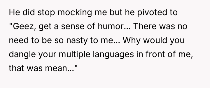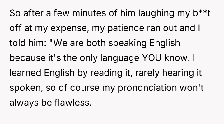 AITAH for shaming an American for only knowing English after he mocked me for mispronouncing an English word?