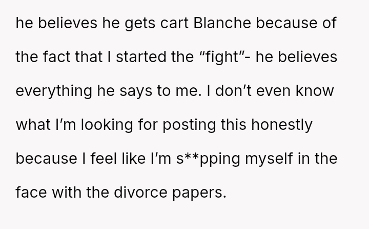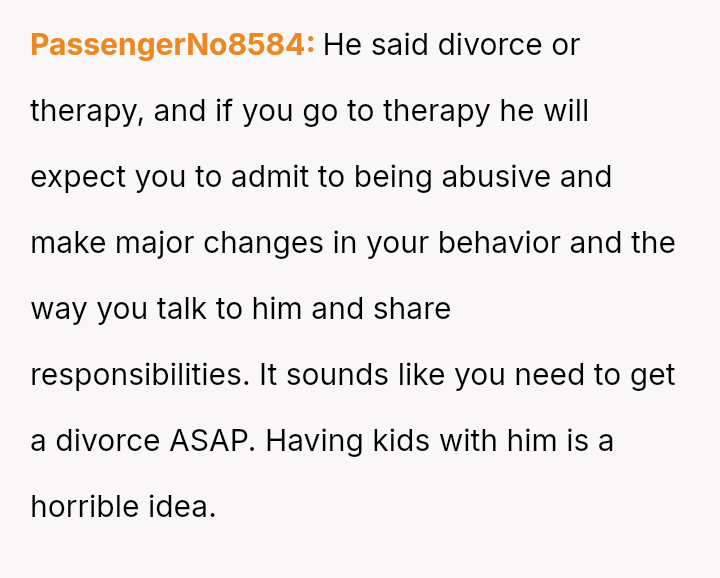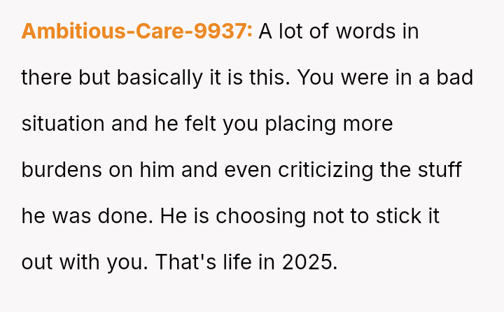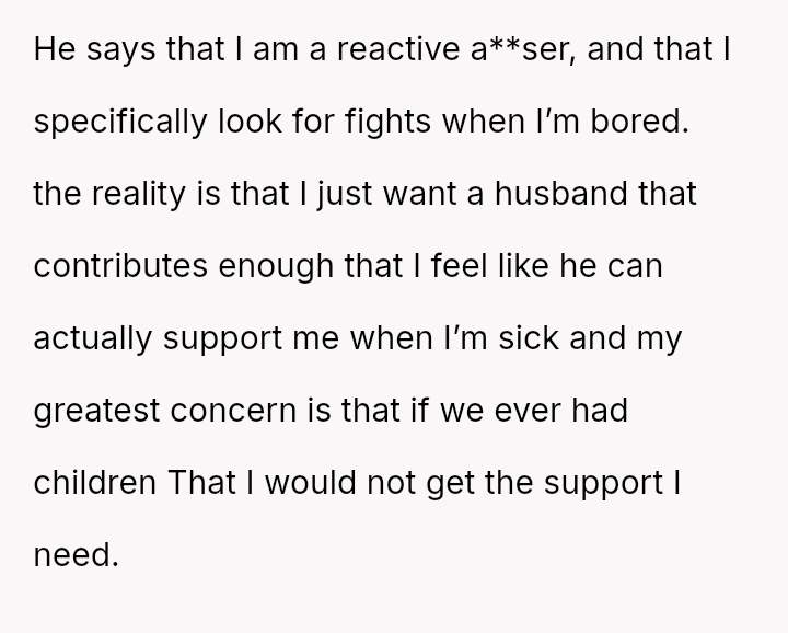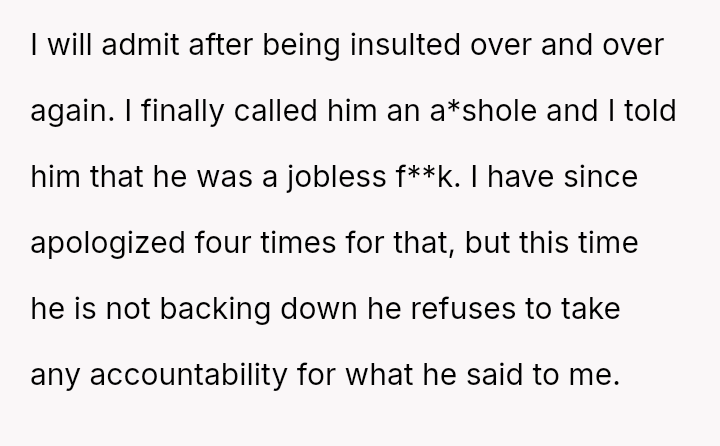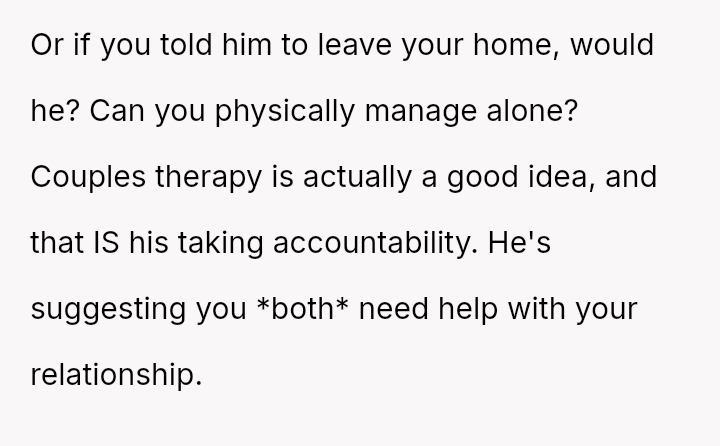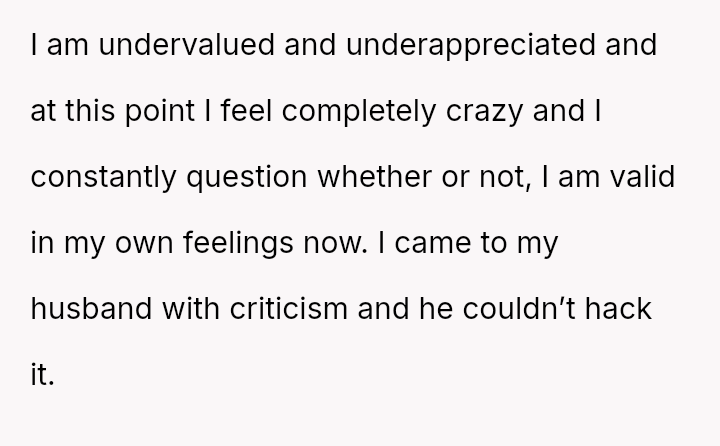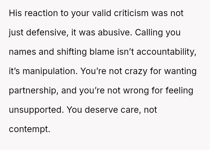 Given the husband's refusal to take accountability for deeply abusive language and the OP's resulting crisis of self-worth, the core question remains: Can a relationship survive when one partner meets a vulnerability crisis with extreme verbal a**se, and if so, does the OP's reactive insult, despite her apology, permanently negate her initial, legitimate grievance about lack of support?