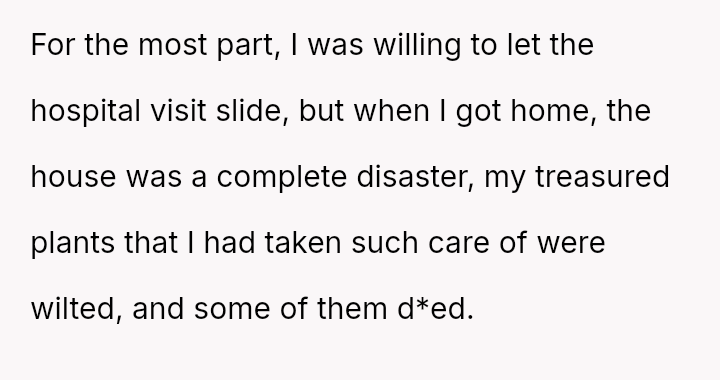 The shattered remnants of her cherished plants echoed the unraveling of a bond strained under the weight of illness and hardship, leaving her to face not only her recovery but the emotional wreckage beside her.