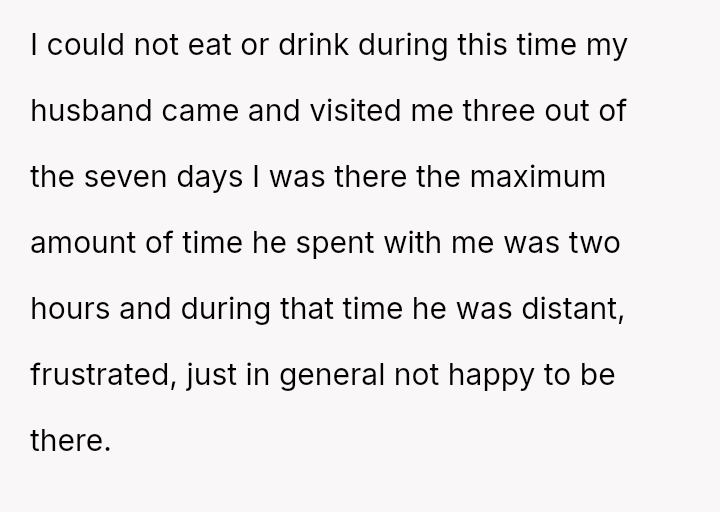 Seven days of pain and despair were made heavier by the distant presence of a husband whose frustration overshadowed the fragile hope she clung to. His visits, spa**e and strained, mirrored the deep disconnect in a time when she needed love the most.
