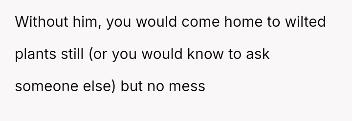 Returning home, the chaos left behind was a silent testament to neglect—a wilting garden that once bloomed with care now lay forgotten, much like her spirit.