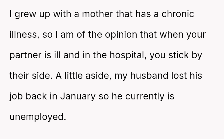 The original poster (OP) is experiencing profound feelings of being unsupported and undervalued, particularly after a serious hospitalization, which was compounded by her husband's perceived lack of care both in the hospital and at home.