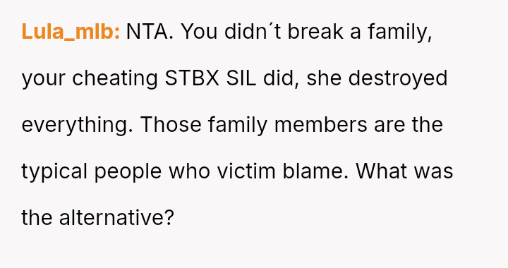 The original poster (OP) is facing severe emotional fallout after revealing their sister-in-law's in***elity and the paternity fraud regarding their nephew.